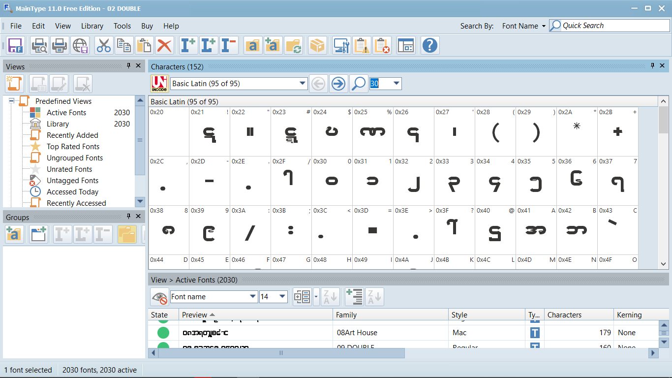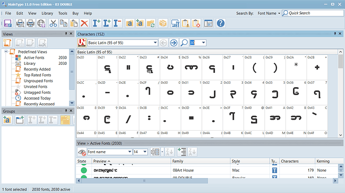 I installed Free Maintype, played around and printed a page with characters including codepage & names. But I can’t see to find adjustment to numbers of characters on a row. It printed with default 17 char/row. Which is too small for some characters to see. I want them to be printed out as in view ( see image ), 12 char/row with 30 Points. The print isn’t helpful for me like Google Font view and print.