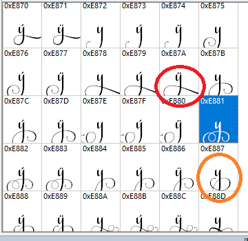 The program I am using is allowing me to see and use the different styles… I just have to do it 2 times.. for example… I copy what you see highlighted in the image, but what is circled in red is what is copied over. I have to then go back, count how many characters it is away, copy it (the orange one) to get the one I want.