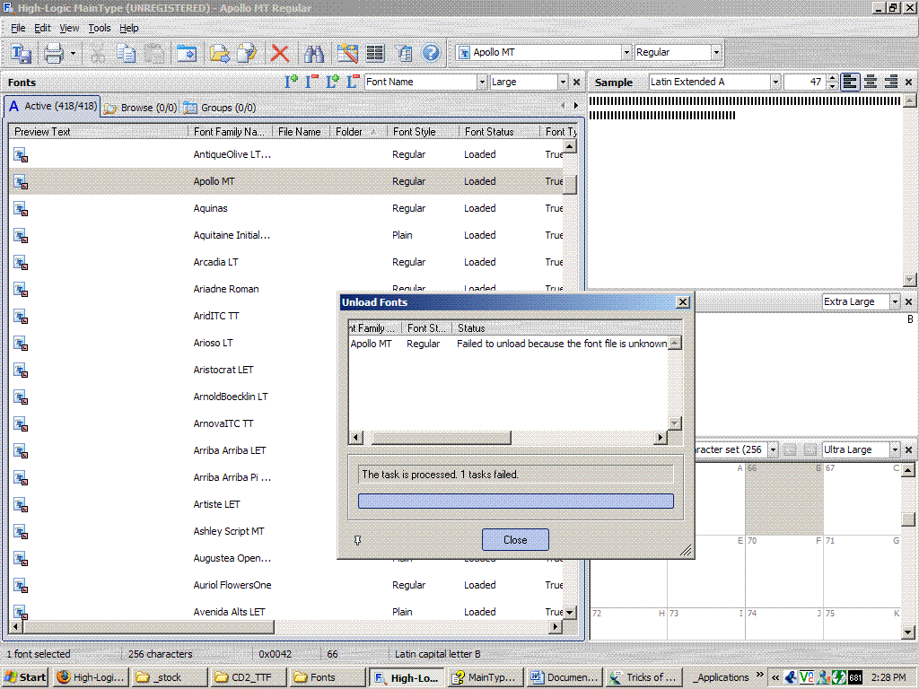 open MT and I see the fonts now, BUT ‘file name’ and ‘folder’ information are still blank, and I still cant uninstall/delete/unload any of the fonts located on teh dvd.
