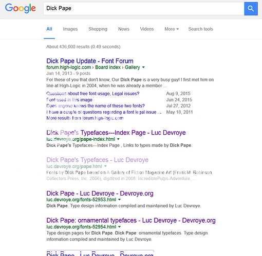 Hi, I registered just so I could message Dick Pape. I want to thank you for your Jack Daniels fonts, I’ve used them in a shirt design for my brand and will be included in my Kickstarter campaign. If they prove popular, I want to cut you in on some profits. It wasn’t until recently I found out who made them (since I was a moron when I first started and vectored my design without saving an original ‘text intact’ version, I didn’t know the names of them). I’m not a greedy dude and I fully recognize that my design would have been seriously lacking with out your close match fonts. So again, thank you, and keep doing what you do.