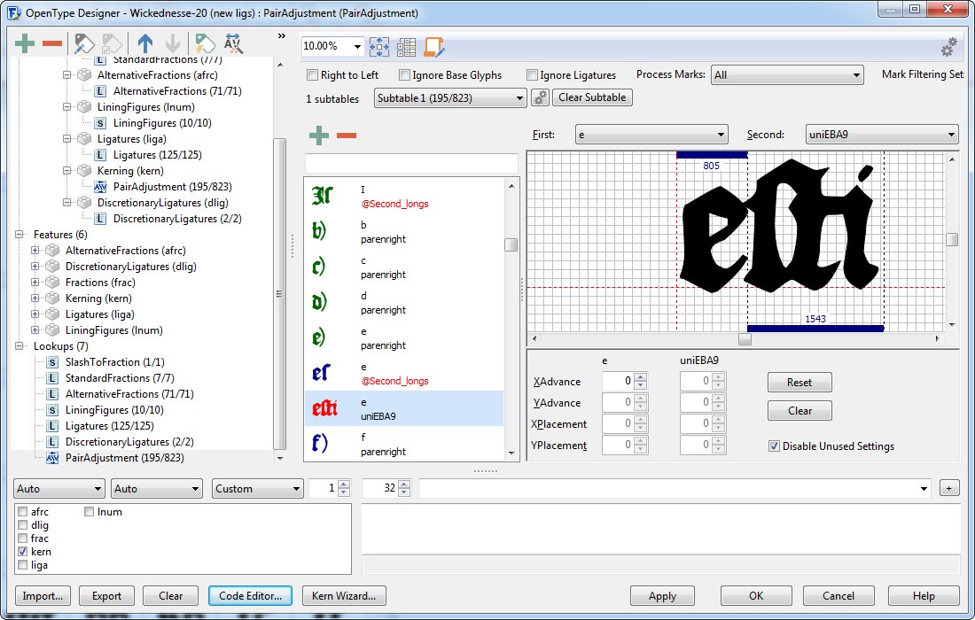 However, I couldn’t help but notice that some of my ligs (in the PUA) did need additional kerning, and so that’s what I’ve been working on.