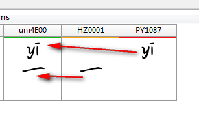 To create the composited glyph uni4E00 in your first post, you could create a script to insert the glyph uni4E00 and complete composites based on HZ0001 and PY1087.