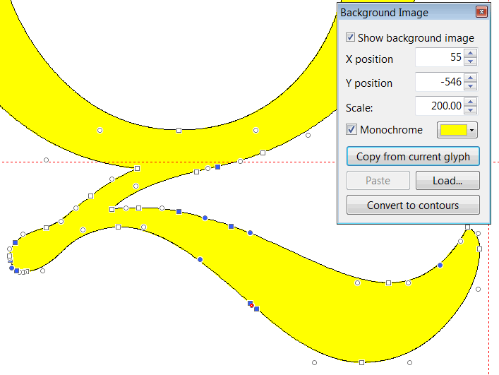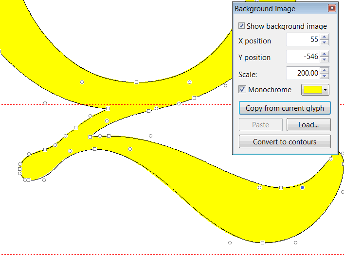 I didn’t know that it was possible to display a background image behind a glyph you are editing. It is possible in Font Forge but I haven’t noticed it in Font Creator.