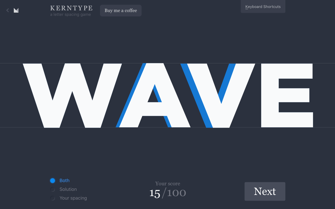 This will examine your kerning skills. Move letters into position in a 10 font test. Nicely done.