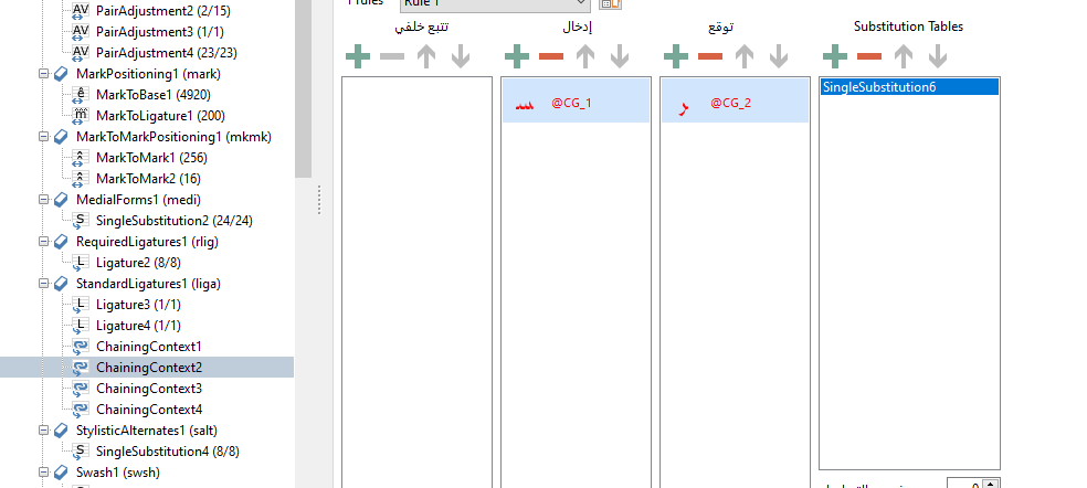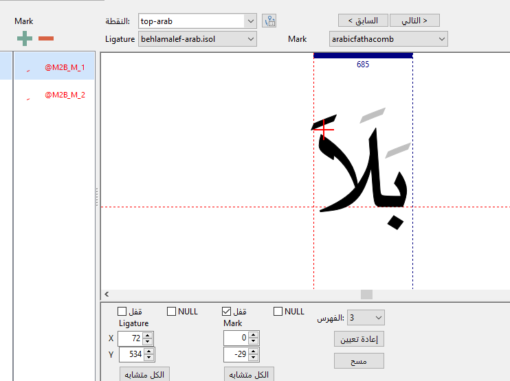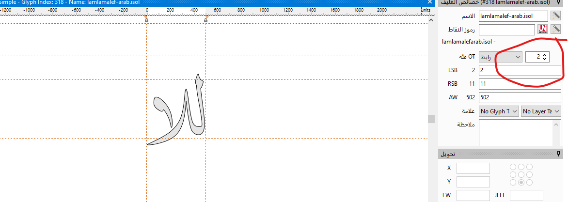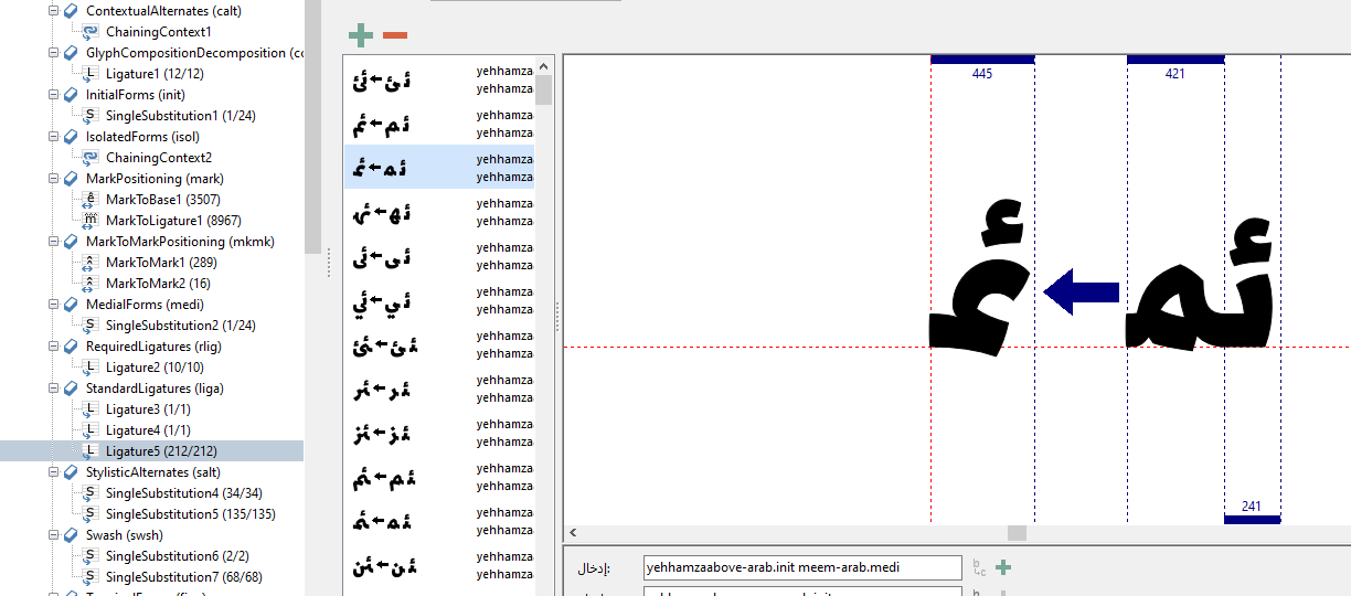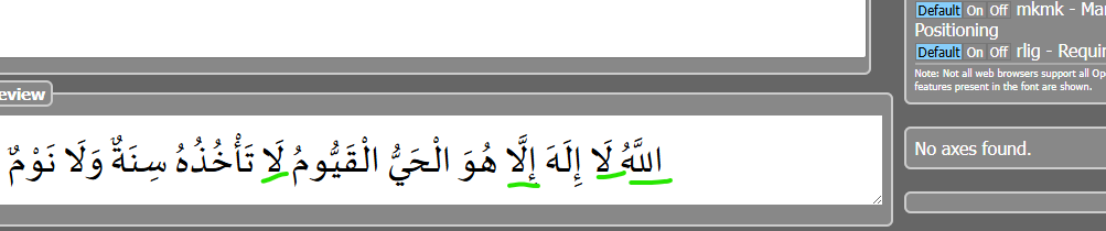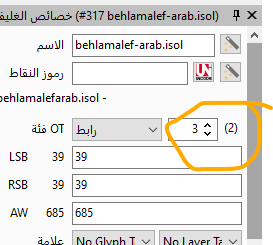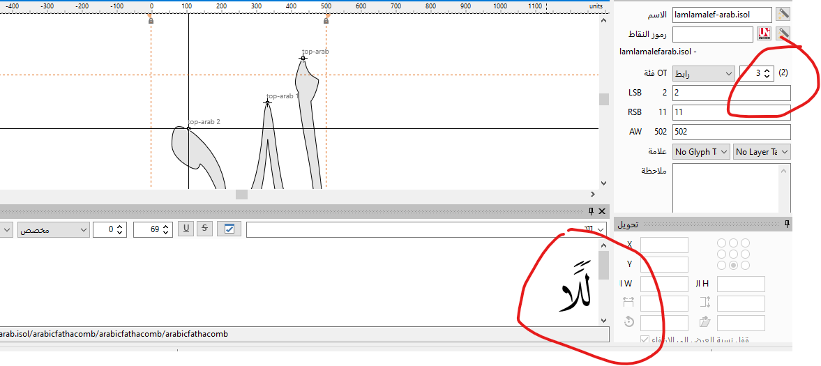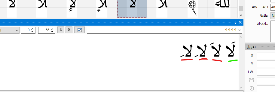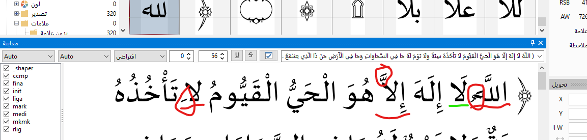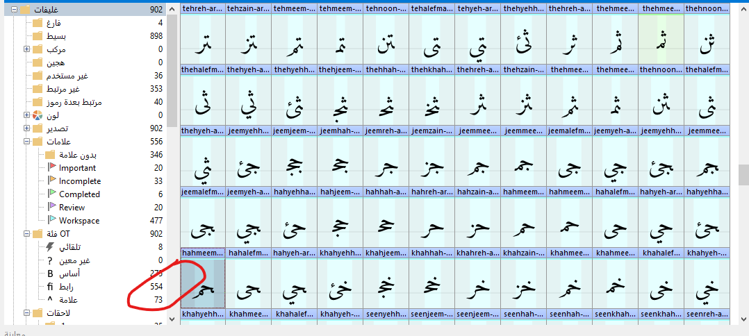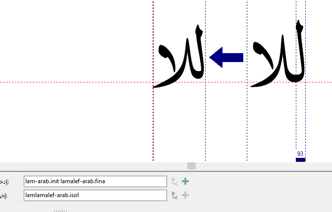 The same word, lamalef-arab.isol, is repeated 4 times and doesn’t display correctly.