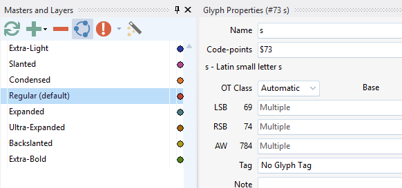 I am working on variable fonts and finding that the Masters and Layers Panel’s ability to edit across layers can be improved: