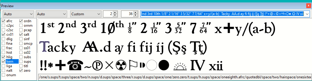 Hi BP–I just watched a YouTube video from Quark for the new dot release of QXP and noticed they were using this font to demonstrate a couple of the new added OT Features (one of which is afrc).