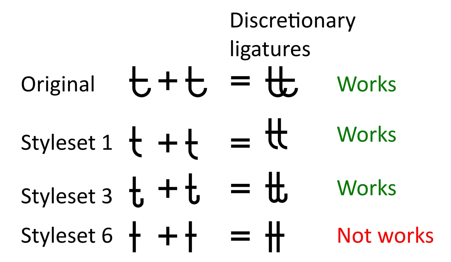 I have a problem. Why not work dicreationary ligature in Stylelistic set 6?