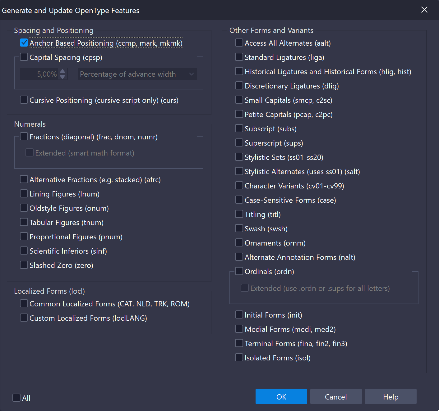 I’m pretty new to OpenType work and I’m looking for some workflow guidance, mainly with positioning, more specifically with classes and anchors.
